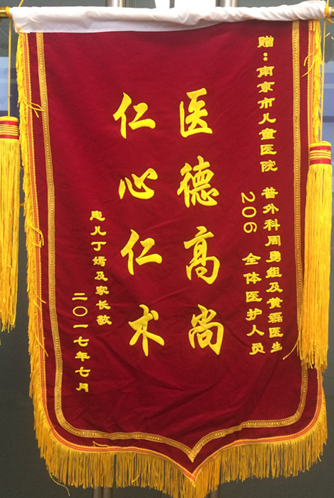 赠:皇冠信用盘(中国)官方网站 普外科周勇组及黄磊医生 206全体医护人员医德高尚 仁心仁术患儿丁嫣及家长敬二〇一七年七月