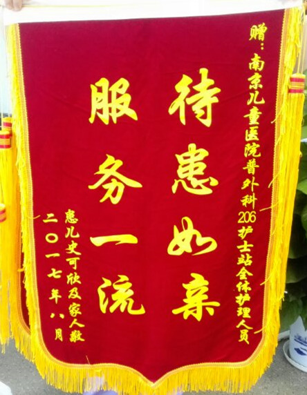 赠:皇冠信用盘 普外科206护士站全体护理人员待患如亲 服务一流患儿史可欣及家人敬二〇一七年八月