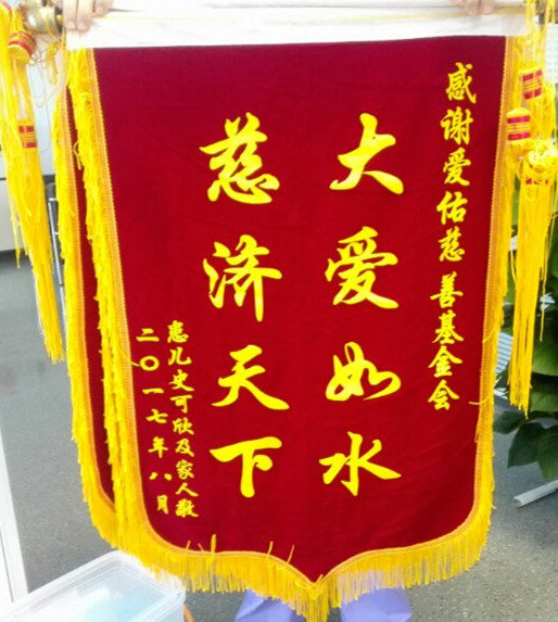 感谢爱佑慈善基金会大爱如水 慈济天下患儿史可欣及家人敬二〇一七年八月