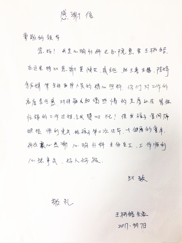 感谢信_210A病区(心胸外科)_20170907_莫绪明 戚继荣 张玉喜 陈婷 余庆娣等全体医护人员