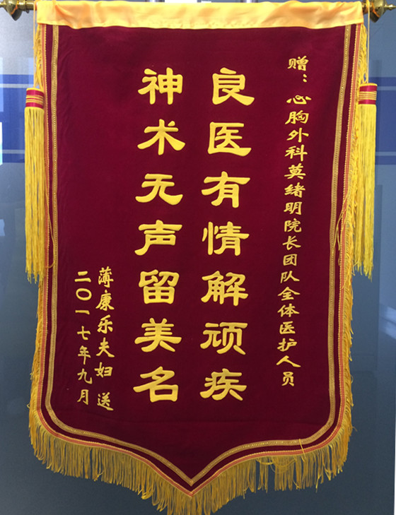 赠:心胸外科莫绪明院长团队全体医护人员良医有情解顽疾 神术无声留美名薄康乐夫妇 送二〇一七年九月
