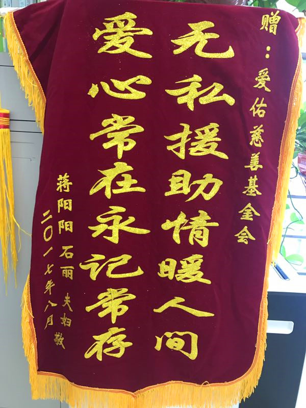 赠:爱佑慈善基金会无私援助情暖人间 爱心常在永记常存蒋阳阳 石丽 夫妇 敬二〇一七年八月
