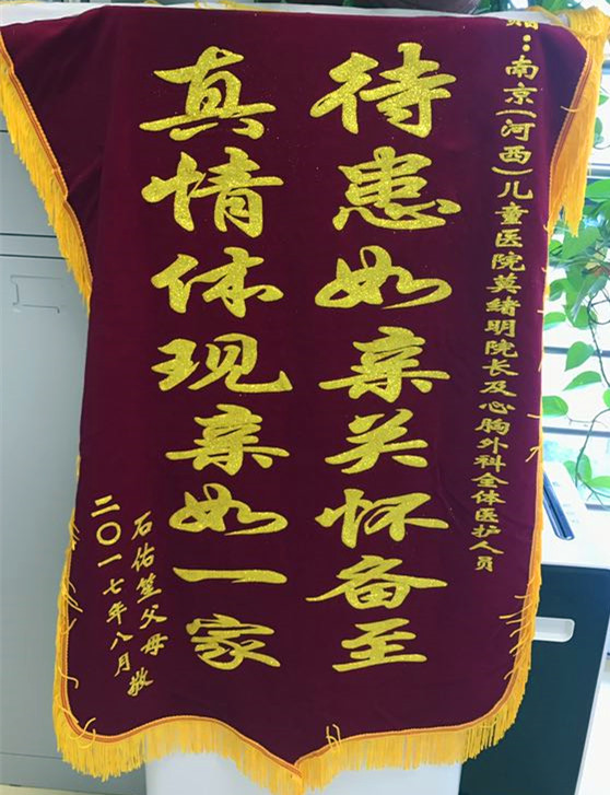 赠:南京(河西)皇冠信用盘 莫绪明院长及心胸外科全体医护人员待患如亲关怀备至 真情体现亲如一家石佑生父母 敬二〇一七年八月