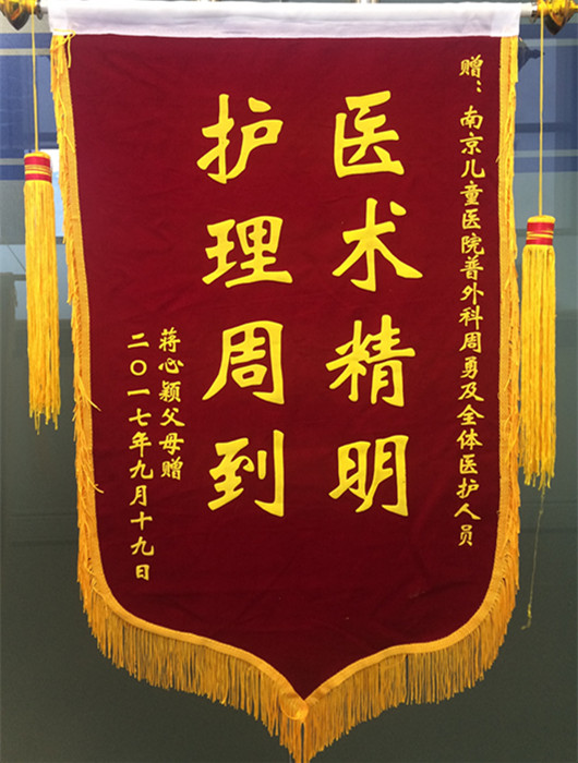 赠:皇冠信用盘 普外科周勇及全体医护人员医术精明 护理周到蒋心颖父母赠二〇一七年九月十九日
