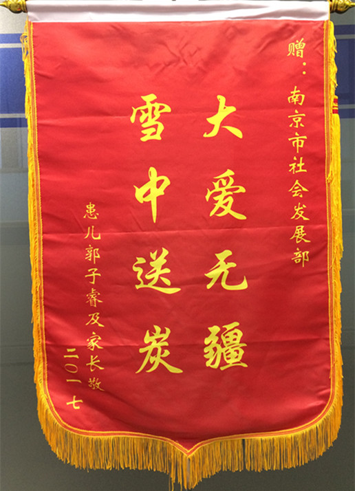 赠:南京市社会发展部大爱无疆 雪中送炭患儿郭子睿及家长敬二〇一七