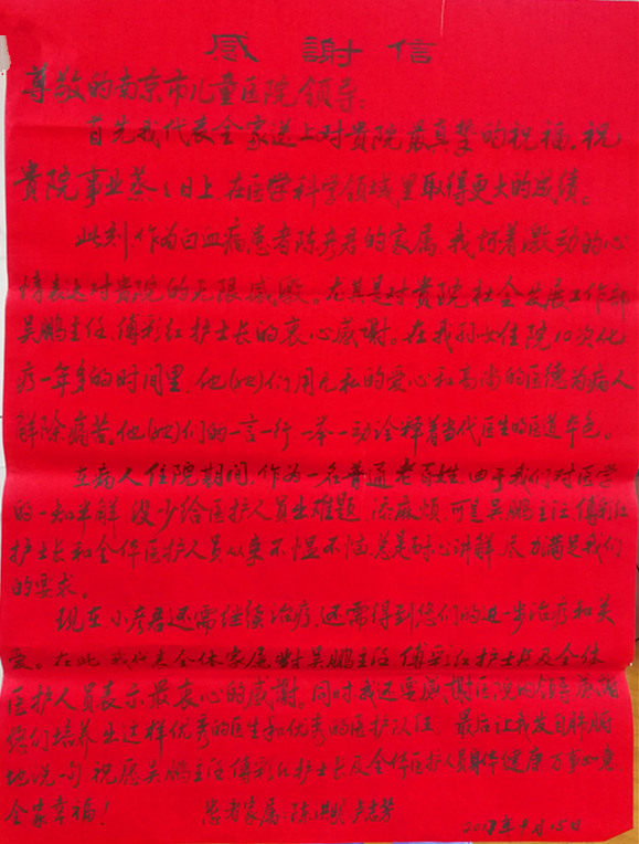 感谢信_血液肿瘤科_20171010_吴鹏 傅彩红及全体医护人员