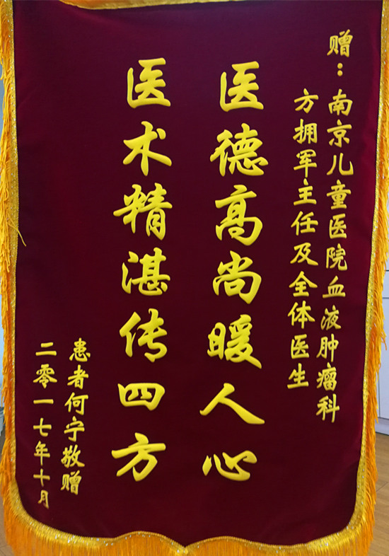 赠:皇冠信用盘 血液肿瘤科 方拥军主任及全体医生医德高尚暖人心 医术精湛传四方患者何宁敬赠二〇一七年十月