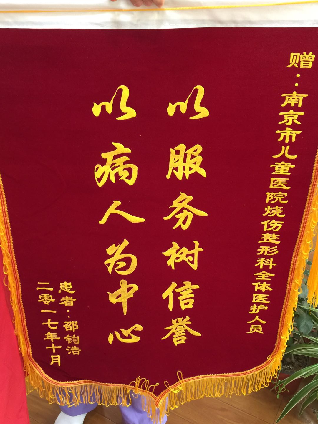 赠:皇冠信用盘(中国)官方网站 烧伤整形科全体医护人员以服务树信誉 以病人为中心患者:邵钧浩二零一七年十月