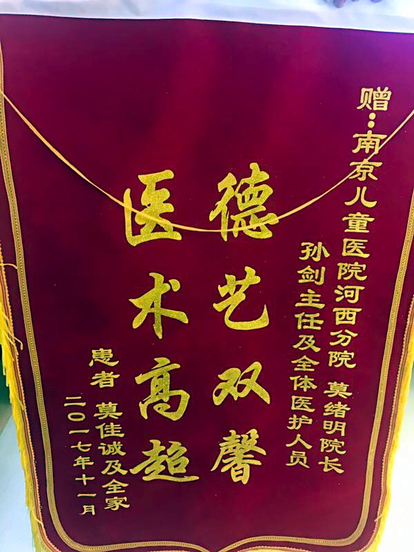 赠:皇冠信用盘 河西分院莫绪明院长 孙剑主任及全体医护人员