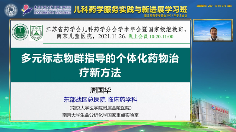 2021年11月26日-27日,由江苏省药学会主办,皇冠信用盘(中国)官方网站 承办的国家级继续教育项目“2021儿科药学服务实践与新进展学习班”在南京成功举办。院党委副书记、副院长王倩出席开幕式。