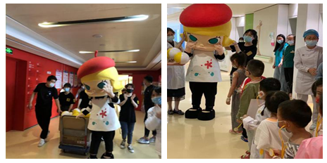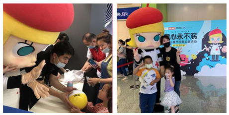 此次,由爱佑慈善基金会携手爱心企业泡泡玛特、南京海底世界共同走进皇冠信用盘 ,小画家Molly、可爱的小企鹅、小水母也来到门诊和病房,与小朋友们互动,给他们送上礼物,受到了小朋友们的热烈欢迎。才华横溢的小画家Molly应邀参加我们的爱心活动,她的到来更是给这次活动增添了靓丽的色彩,她摇曳着傲娇的身姿走来,把一个个扭蛋送到小朋友手里,小小扭蛋也担当起了传递美好的使命,它的身躯代表着陪伴和治愈,更蕴藏着巨大的能量。